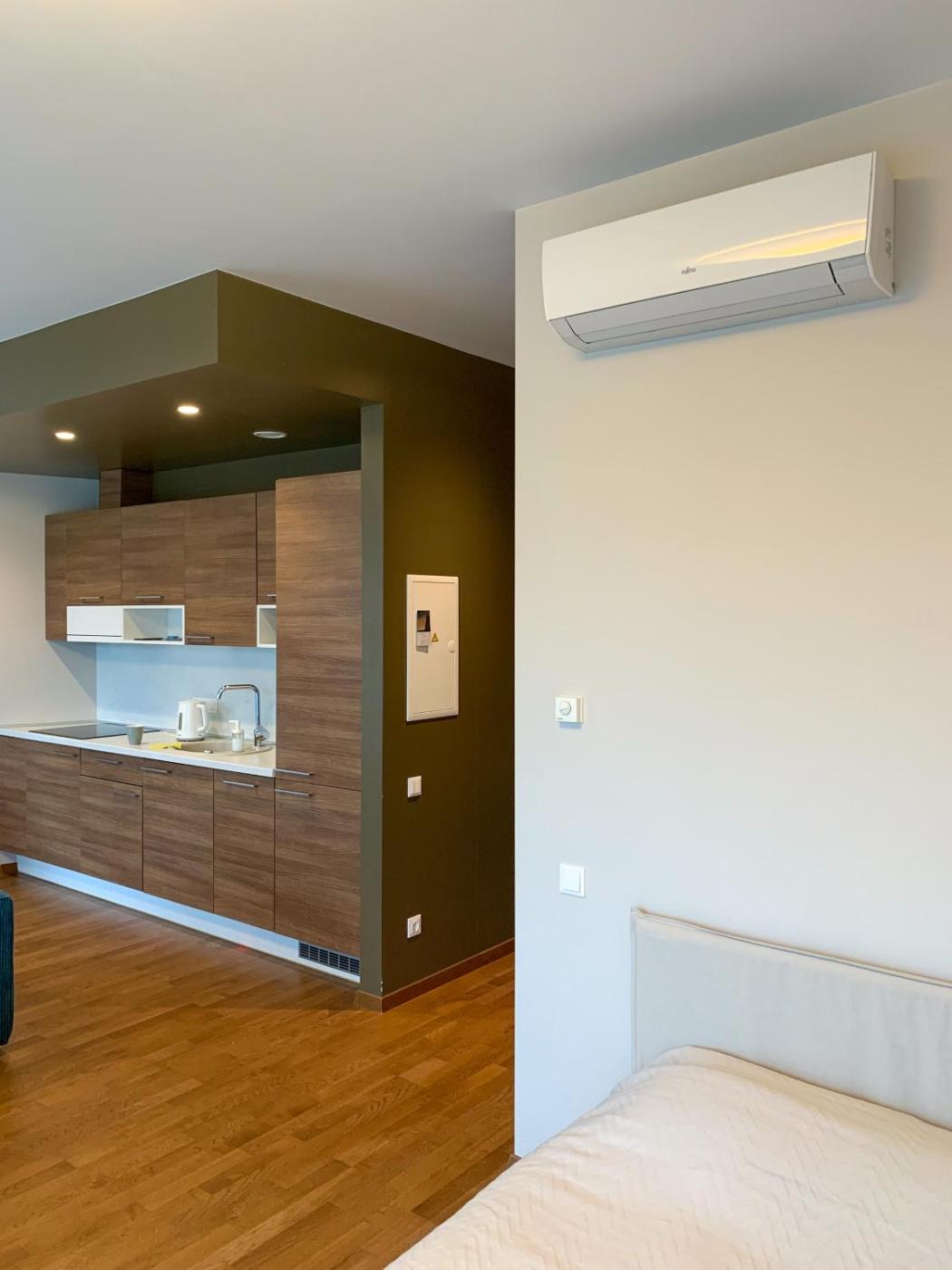 One-Bedroom Apartment. The air-conditioned apartment features 1 bedroom and 1 bathroom with a shower and a hairdryer. In the well-equipped kitchen, guests will find a stovetop, a refrigerator, a dishwasher and kitchenware. Featuring a balcony with a quiet street view, this apartment also provides a washing machine and a flat-screen TV with streaming services. The unit offers 2 beds.