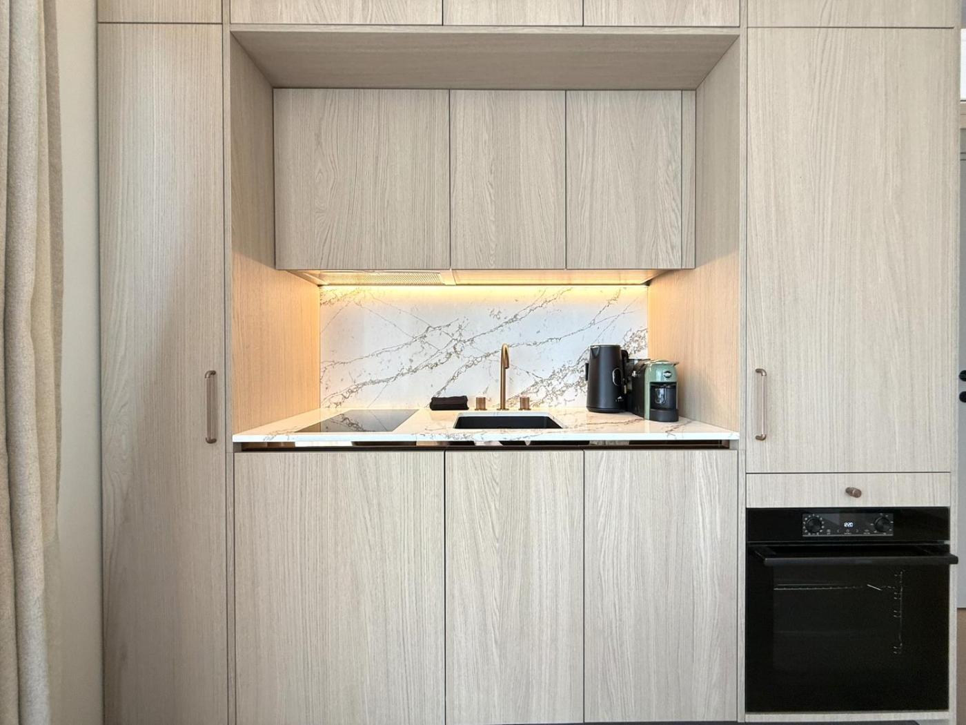 One-Bedroom Apartment. Boasting a private entrance, this air-conditioned apartment comes with 1 living room, 1 separate bedroom and 1 bathroom with a shower and a hairdryer. The well-equipped kitchen has a stovetop, a refrigerator, a dishwasher and kitchenware. The apartment features a flat-screen TV with satellite channels, a washing machine, soundproof walls, a tea and coffee maker as well as city views. The unit has 2 beds.