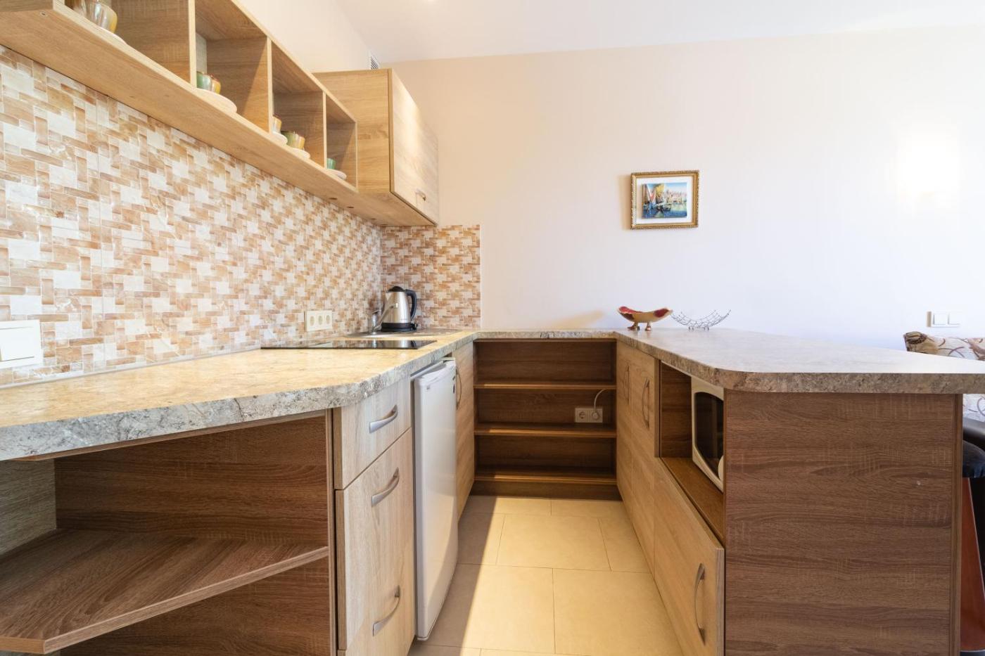 The apartment provides guests with a balcony, garden views, a seating area, cable flat-screen TV, a fully equipped kitchen with a microwave and a fridge, and a private bathroom with hot tub and a hair dryer.units have private entrance. At the apartment complex, every unit is fitted with bed linen and towels.