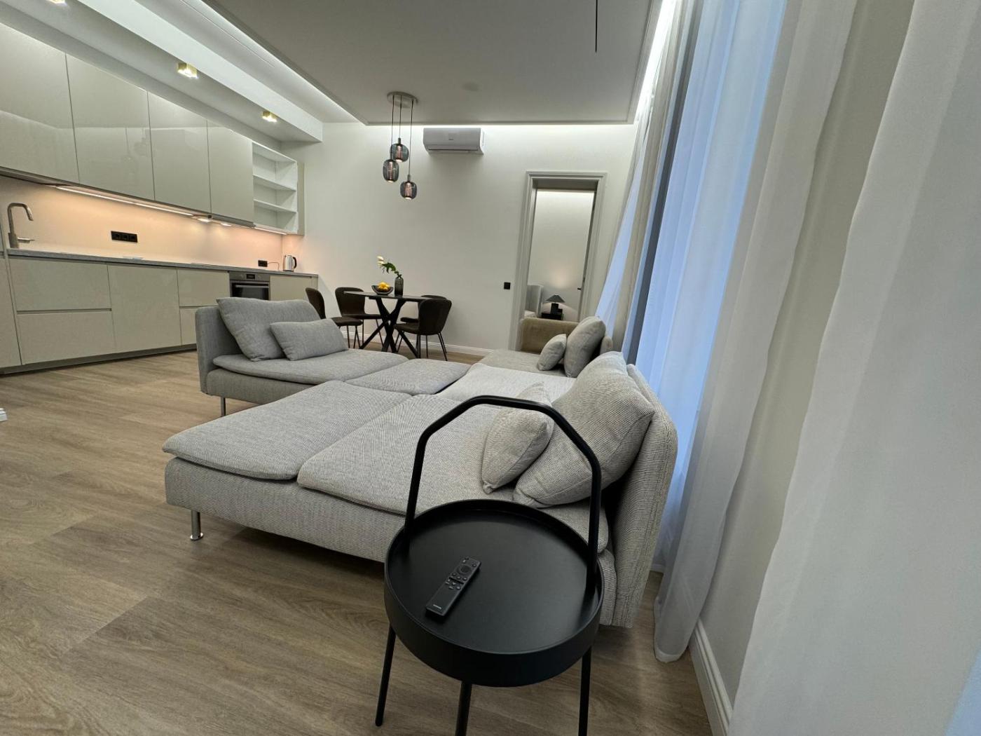 Deluxe One-Bedroom Apartment with City View. Boasting a private entrance, this air-conditioned apartment includes 1 living room, 1 separate bedroom and 1 bathroom with a shower and a hairdryer. In the kitchen, guests will find a stovetop, a refrigerator, a dishwasher and kitchenware. The apartment offers a flat-screen TV with cable channels, a washing machine, soundproof walls, a tea and coffee maker as well as city views. The unit has 2 beds. ;